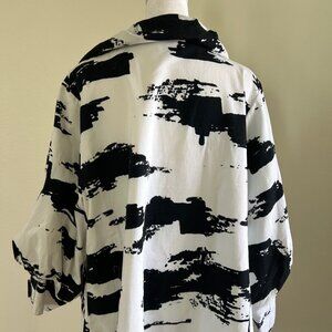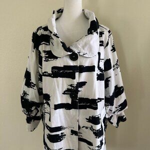 Anthropologie Hazel Coat Womens Black/White Abstract Lagenlook Artsy SZL Relaxed