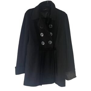 Anthropologie Hazel Women's Size Large Black Wool Blend Double Breasted Pea Coat