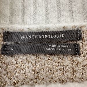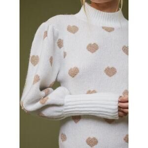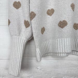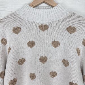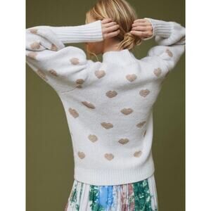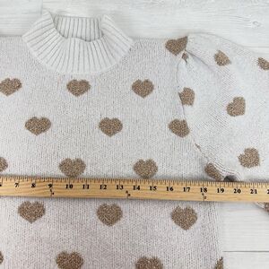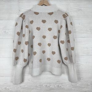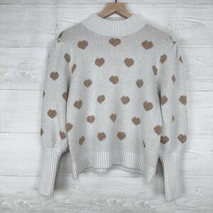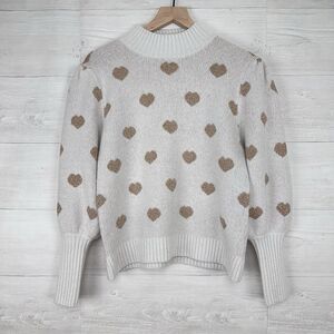 Anthropologie Hearts Sweater Women L Neutral Gold Puff Sleeve High Neck Pullover