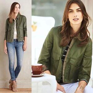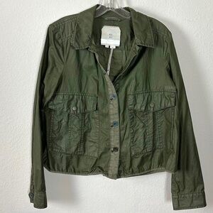 Anthropologie Hei Hei Coated / Waxed Army Green Military Utility Swing Jacket S
