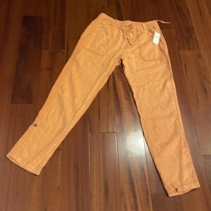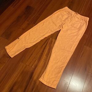 Anthropologie Hei Hei Sight Seer coral linen cargo pants. The color was very hard to capture in photos. The stock photo and last 4 photos best represent the trie color.