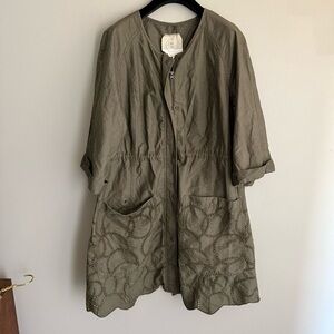 Anthropologie Hei Hei Cotton twill Scalloped hem embroidered anorak jacket