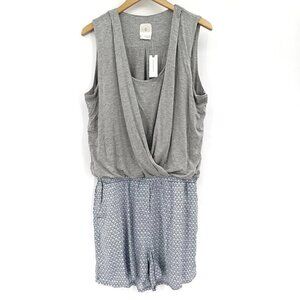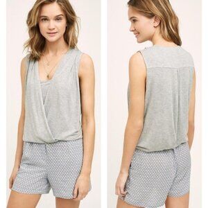 Anthropologie Hei Hei Gray Multi Jersey Knit Cross Front Sleeveless Large Romper