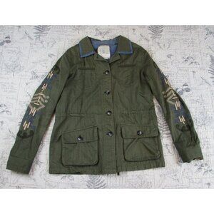 Anthropologie Hei Hei Green Embroidered Anorak Utility Field Jacket Women’s small s