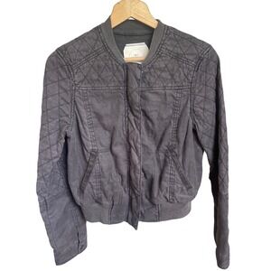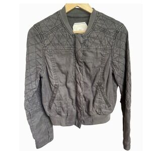 Anthropologie Hei Hei Itinerary Quilted Charcoal Grey Bomber Jacket S In EUC