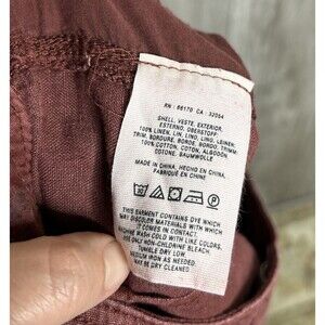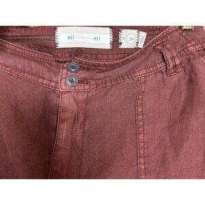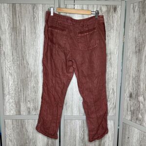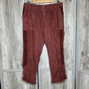 Anthropologie Hei Hei Linen Pants Roll Up Lace Embroidered Trim Rusted Red Sz 28
