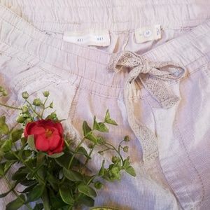 Anthropologie Hei Hei Linen Blend Roll Up Pant Medium. EUC. No flaws! Convertible legs...Can be rolled up or left down. Elastic waist with fun lace drawstring. Lightweight, beach perfect, adorable, and a must have! 52% linen, 48% cotton. Last stock photo is ONLY for fit and style reference. Selling the khaki colored pant. Please ask all questions prior to purchase. Offers welcome.