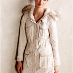 Used, in good condition. Off white, convertible jacket. I do have the fur removable hood. I just didn't take a picture of it, but it's in very good condition. Size 2P, but fits like a 4.