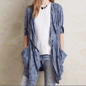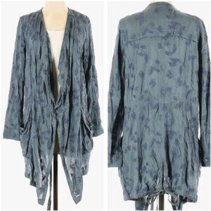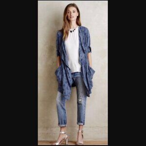 Anthropologie Hei Hei Periwinkle Embroidered Draped Chambray Jacket Kimono Sz L