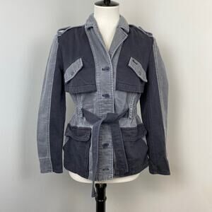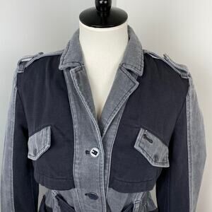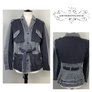 Gorgeous Anthropologie HEI HEI Colorblock Gray Black Ruffle Back Anorak Jacket Coat