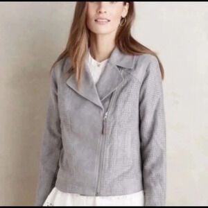 Anthropologie | Hei Hei Womens Size Small Gray Faux Suede Perforated Moto Jacket