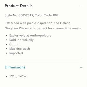 Anthropologie Helana Woven Gingham Placemat 19”x14”