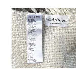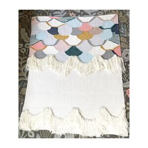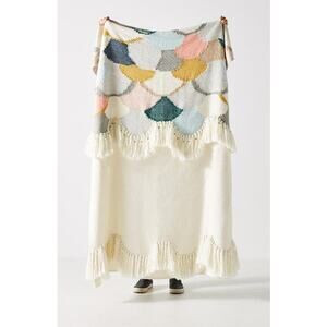Anthropologie Hello Hydrangea Scalloped Fringe Knit Throw Blanket, Cream Ivory