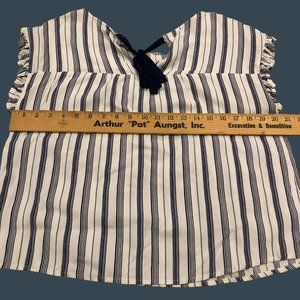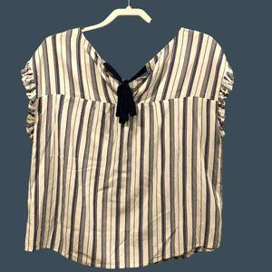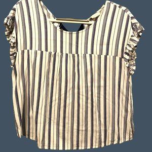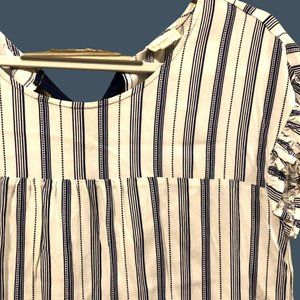 Anthropologie Hem & Thread Sz L Blouse Ruffle Cap Sleeve Flowy Babydoll Blue Gir