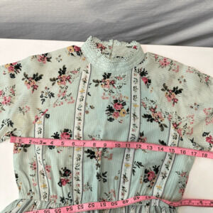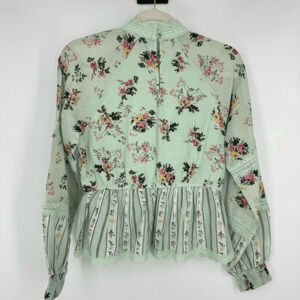 Anthropologie Amour Floral Lace Blouse Mock Neck Mint Green XS Bishop Sleeve