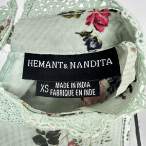 Anthropologie Hemant & Nandita Floral Lace Top Mock Neck Green XS Ballon Sleeve