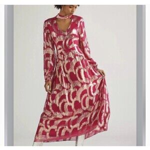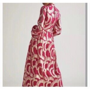 Anthropologie Hemant & Nandita Metallic Maxi Dress Pink & Gold Size 4 NWT $435