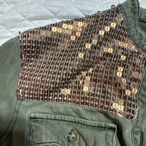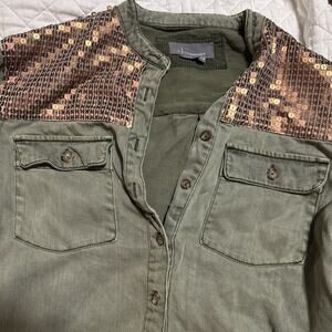 Anthropologie Henley Top Women's 4 Green Sequin Button Up Long Sleeve Western