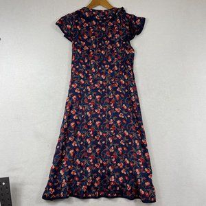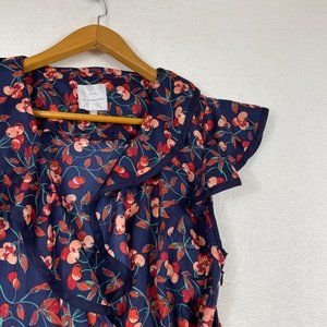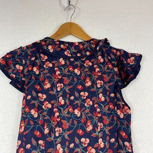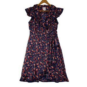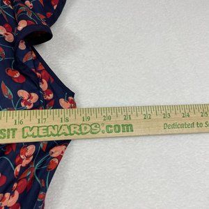 Anthropologie Hey There Cereja Cherry Print Faux Wrap Dress Size 6 Blue Satin