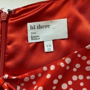 Anthropologie Hi There Karen Walker Prosecco Dress 4 Red Orange White Polka Dot