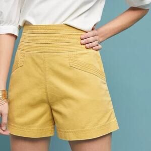 Anthropologie Hi-Rise Boardwalk Linen Blend Side Button Shorts In Mustard Yellow Size 4