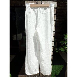 Anthropologie High Waisted White Linen Mix Pleated Pants - Size Medium
