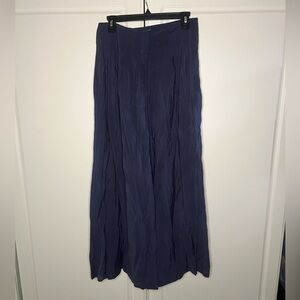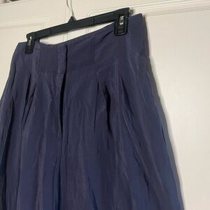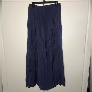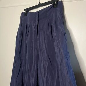 Anthropologie high waisted pleated wide leg palazzo style pants. Zipper and hook and eye closure. Material is a lightweight and comfortable dark blue/navy with a subtle sheen. Size 6.