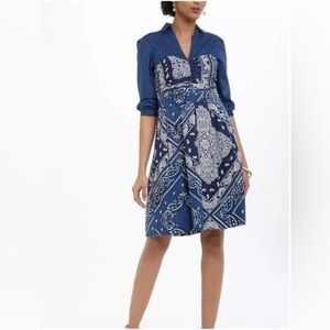 Anthropologie Holding Horses Bandana Shirtdress | Blue & White | Size 4 | Western Boho