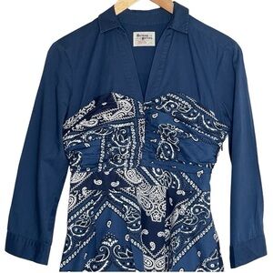 Anthropologie Holding Horses Bandana Shirtdress | Blue | Size 4 | Western Boho