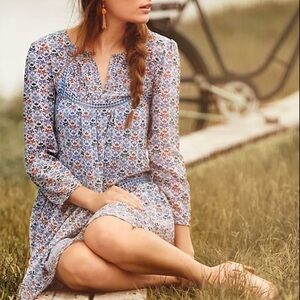 Anthropologie Holding Horses Betony Swing Crochet Prairie Floral Dress Sz 0/UK 4