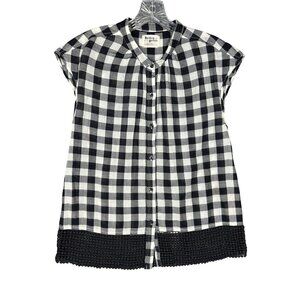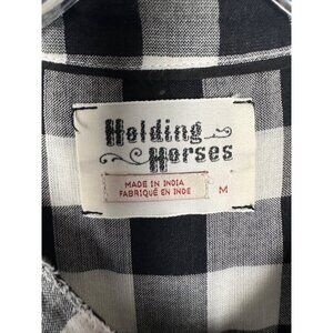 Anthropologie Holding Horses Black White Gingham Button Down Top Western Boho