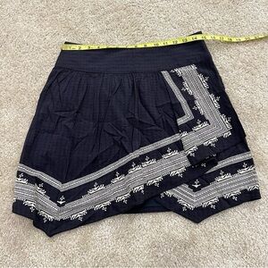 Anthropologie Holding Horses Blue Embroidered Faux A-Line Skirt Size 8 Side Zip,