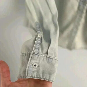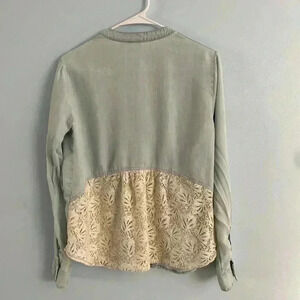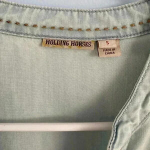 Anthropologie Holding Horses Button Down Shirt Denim Lace Blue Size S