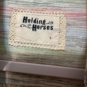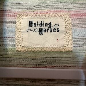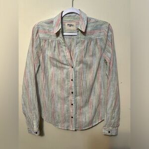 Anthropologie Holding Horses Button Front Top Multicolor Print Long Sleeve Small