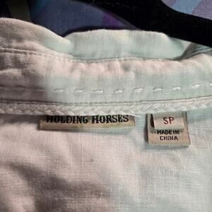 Anthropologie Holding Horses Button Up Hi-Low Top Cream 100% Linen Small - FLAWS