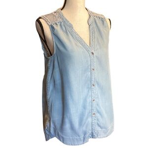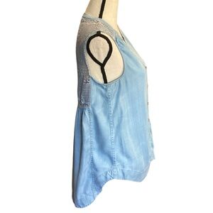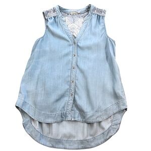 Anthropologie Holding Horses Chambray Sleeveless Woven Back Hi Low Blouse Size 4