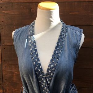 Anthropologie Holding Horses chambray denim wrap style top with belt. Size xs. In great pre owned condition.