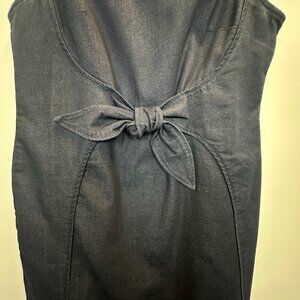 Anthropologie Holding Horses Clara denim tie knot sleeveless dress in a dark blue denim.