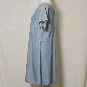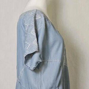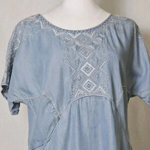 Anthropologie Holding Horses Embroidered Chambray Denim Dress SZ S Pockets Boho