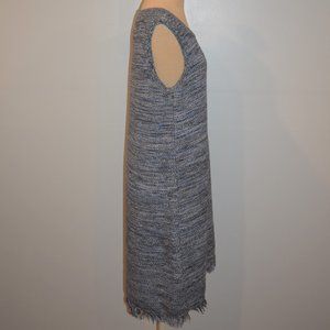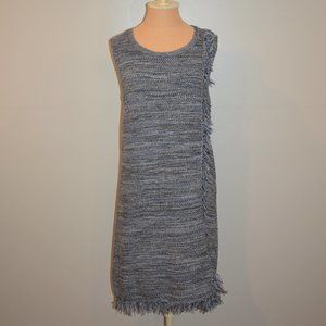 Anthropologie Holding Horses Fringe Sweater Dress. Blue fringed sweater sheath dress. Sleeveless, stretchy material. Bust: 19", waist:20", length: 38".
