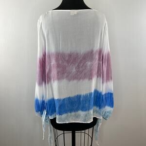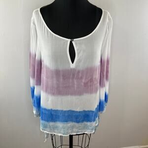 Anthropologie Holding Horses Melting Stripes Tie-Dye Shirt Tee Keyhole Neck M