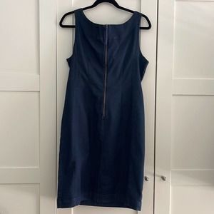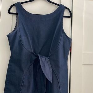 High quality, substantial denim fabric with stretch. Flattering tie at waistline. This dress was carried in Anthropologie Stores. No visible flaws.