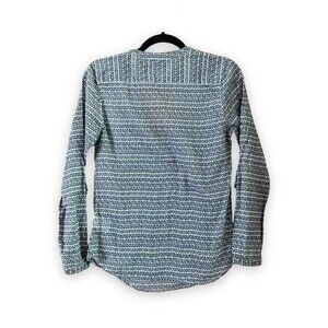 Anthropologie Holding Horses Navy Blue White Printed Popover Roll Tab Top Size 2