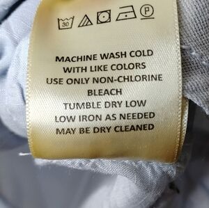 Details: long sleeve w/ roll tabs, button front, mesh insets, pockets, curved hem