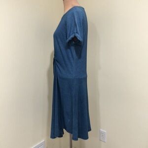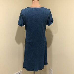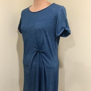 Excellent condition no stains rips or fading. Short sleeve, round neck, fit and flare silhouette, relaxed loose fitting pullover T-shirt dress with knitted twist front. Stretchy cotton knit. Heathered blue.