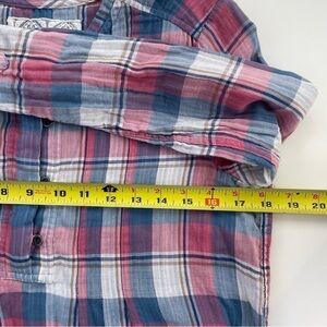 Anthropologie Holding Horses Pink Blue Plaid HalfPenny Tunic Popover Top Size 4