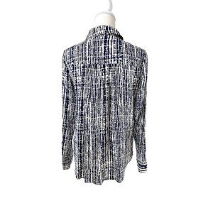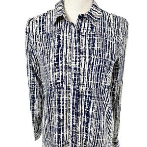 Anthropologie Holding Horses Sammie Long Sleeved Navy Blue Abstract Blouse Sz2
