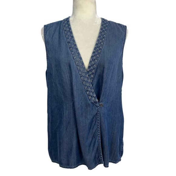 Anthropologie Holding Horses Stitched Chambray Sleeveless Top, **no belt