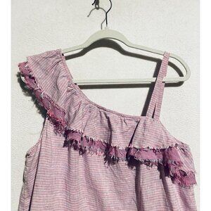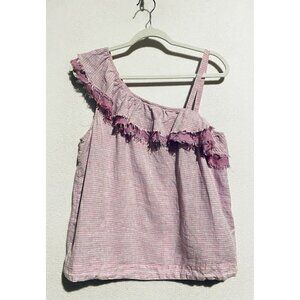 Anthropologie Holding Horses Top Womens Medium Pink Striped One Shoulder Linen