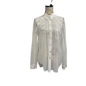 Anthropologie Holding Horses White Crochet Cotton Sheer Button Up Blouse Medium